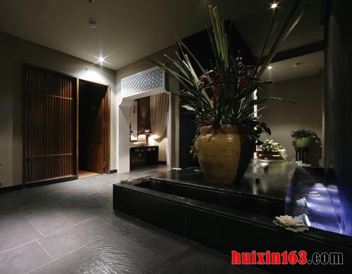 大班会美容SPA会馆建筑面积1200平米,设计空间上使用了简约现代的风格,配以泰式风情的家具、饰品、布艺、陈设等软装元素,在引进现代法的同时,融合了泰式风情,从而体现了极浓郁的异域风情。以柚面木板、仿古砖、壁纸和乳胶漆等为基本材料,搭配泰丝抱枕、精致的木雕、妩媚的纱幔巧妙地将两种风格结合在一起,使空间情调和氛围也得到了最大化的体现, 色调上以深色为主,体现了主人的豪放与热情