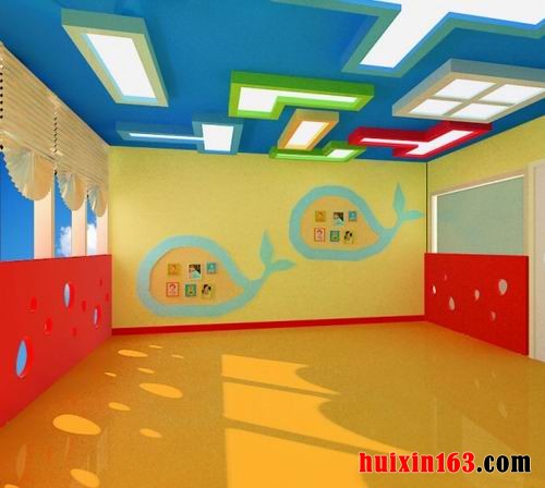 12,此方案是以简洁,明了为空间装饰出艺术性的效果。通过对色彩,线条,及质的这些无素来突出幼儿园的文化内涵,从教学楼外的造弄,到室内用七彩色来装扮,以及教室卫生间画上儿童喜欢的卡通动物,给孩子以一种自由,通畅,及亲和力的感觉,从面达到了真正的艺术性。