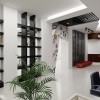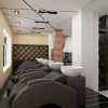 此设计是现代装修设计,主要色彩是黑和白,地面也用黑白来区分功能,发型的图片打破以往的贴墙的方式,顶面局部也贴有发型图片。操作区和功能区都要求宽松,干净,舒适为宜来方便客户的情况下不耽误操作人员的工作,操作区域的镜子样式都各不相同这就体现出现代的创意从而吸引客户的眼求来此发型工作室进行消费。