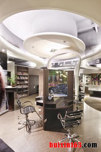 、此设计是一个现代设计,从天花板的造型,以及空间区域的造型墙的设计上都能体现出这是一个现代感及强的一个设计。此设计可以在美发行业的装修上来是决对是一个新颖的设计体现在室曲线形的设计,每个曲线形设计恰到好处的起到了他的应用功能,形成了形而意动的感觉。