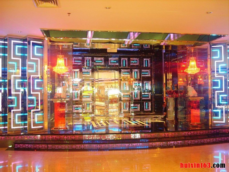 本案是在原来的基础上进行了改造,融入了更多的镜面和烤漆玻璃元素,包括饮水桌、茶几都做成了玻璃的,并且融入进了灯光,让整个空间看起来更加的炫酷。此外,还加入了珠帘元素,让整个空间看起来更加温馨、舒适。