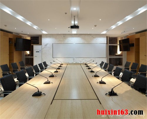 此 会议室的装修的非常简单,墙面的四周都是板材围成,看着非常的大气颜色选择深色正好符合了这一特点,顶面做了一个四周顶没有放主灯,中间用茶色的玻璃镜做为衬底这样增加了空间视觉感。