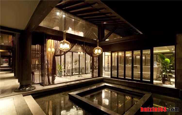 房和会所,大都用玻璃幕墙分隔,将室外的景物引进