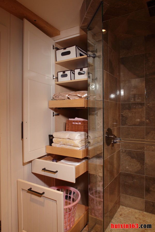 你可能会特别的奇怪,为什么要把书摞得这么高呢?太不安全了吧,而且去用书的时候也非常的不方便,请你仔细的看一下,到底是怎么做到的呢,原来这是一个可爱的竖直的小书架,把书横着摆放起来,能够更加的节省空间,每一层都有不同的分类,你取用书的时候,就可以一次找到所有相关的书,全部取走,找到要用的书,把其余的放回来,很实用也很方便,同时也有很好的装饰的效果,如果你的书摆的很满的话,就会造成一种将书叠罗汉的错觉,非常的有意思。在中间摆放的柜子有四个独立的空间,中间的两个空间是封闭的,两边的空间,采用了网格的镂空的柜门,能够隐约的看到柜子里面的情景。也是一个非常有新意的创造性的存储方案。