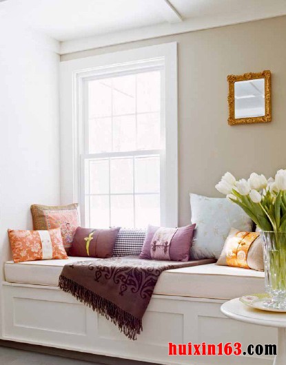 有时候不用对飘窗本身做任何的改造,只是在飘窗的区域摆放一个定制的家具就能够设计出一个富有特色的家居休闲空间。