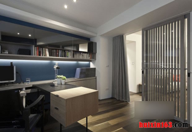 拿出一间房间作为书房,是一个追求知识的人多么向往的一件事情,在墙面上采用隔板设计出一个超长的书架,并且搭配上镜面的运用,在和墙面成直角的位置摆放了一个书桌,与靠着墙面的书桌形成一个直角的书桌,感觉是如此的高雅和温馨。