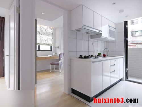 厨房的设计要简约和实用,将灶台,水槽以及吊柜和油烟机都整齐的排列在一个空间中,一切都显得井井有条,不会有任何的杂乱的现象。