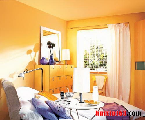 在地面上铺设的是深灰色的实木地板,休闲风格的沙发呈现出非常成熟的黄色,在沙发的后面则是三层漂亮和简约的小书架,还有充满了丰收喜悦的黄色的窗帘,让人仿佛感受到秋天的微笑。