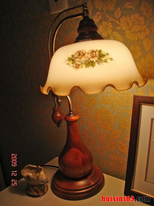 在房间的墙面上是那种透露着历史痕迹的墙布,桌面上的一个小茶杯就像是一个海螺的造型,旁边是一个红木的葫芦造型的台灯,灯罩上呈现出漂亮和优雅的卷边,还有素雅的花朵的图案,都让人感觉非常的舒适和自在。